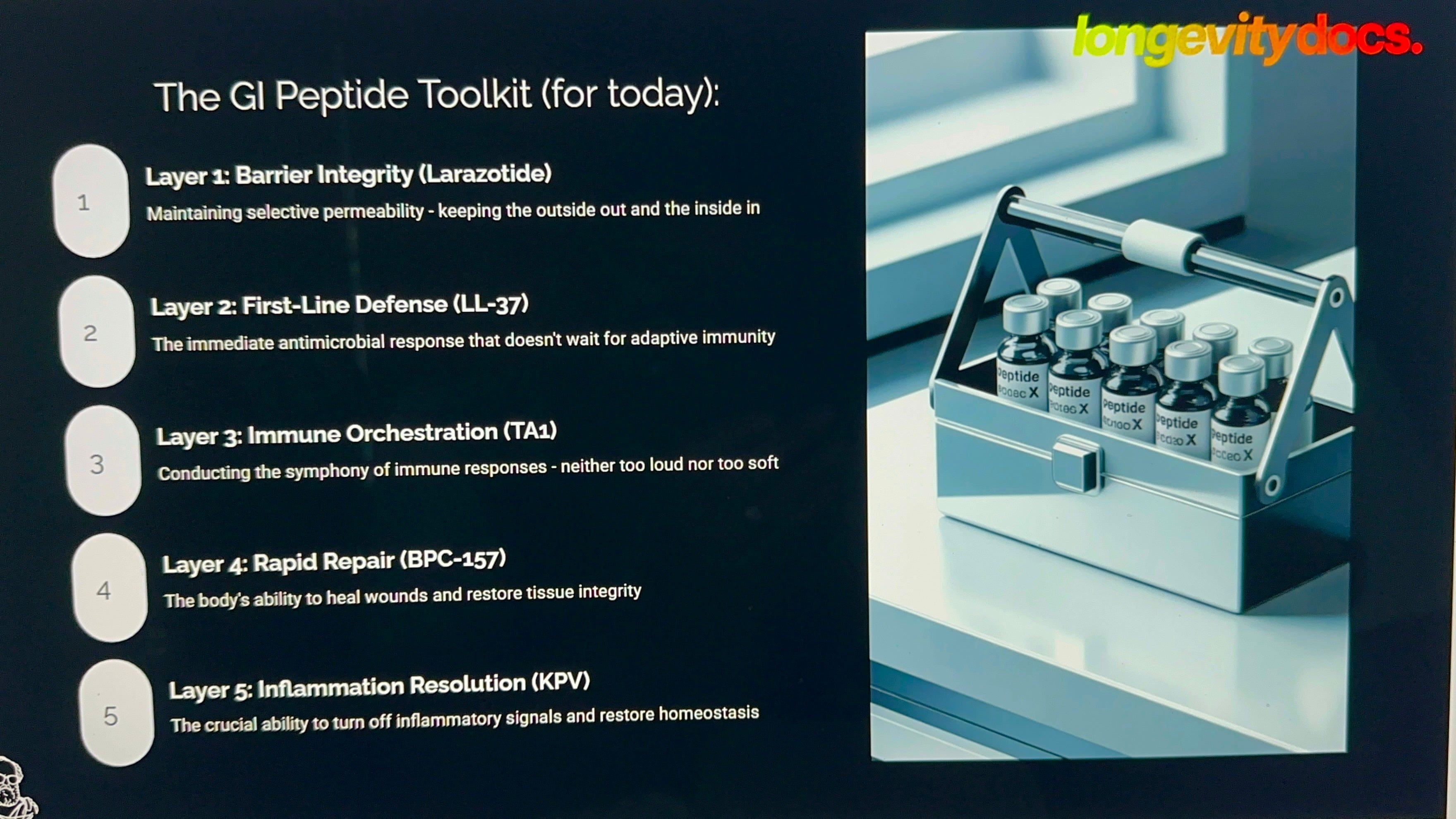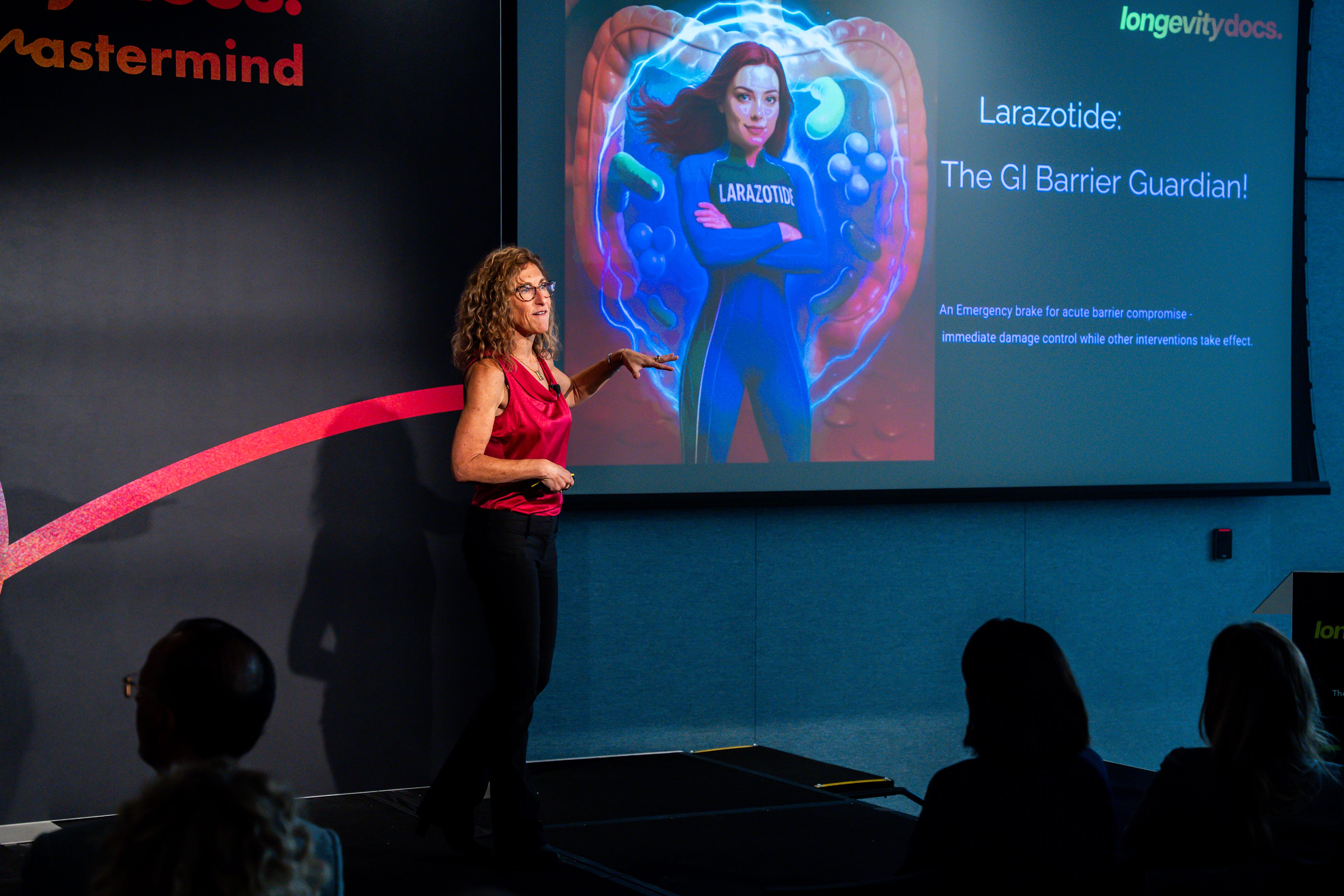 Next came Dr. Cynthia Keller, an integrative physician from Seattle who has quietly built one of the most respected gut health practices in the country. Her lecture, could have been titled “Gut Tides” was a masterclass on what she calls the five layers of the gut and how peptide medicine can restore them.